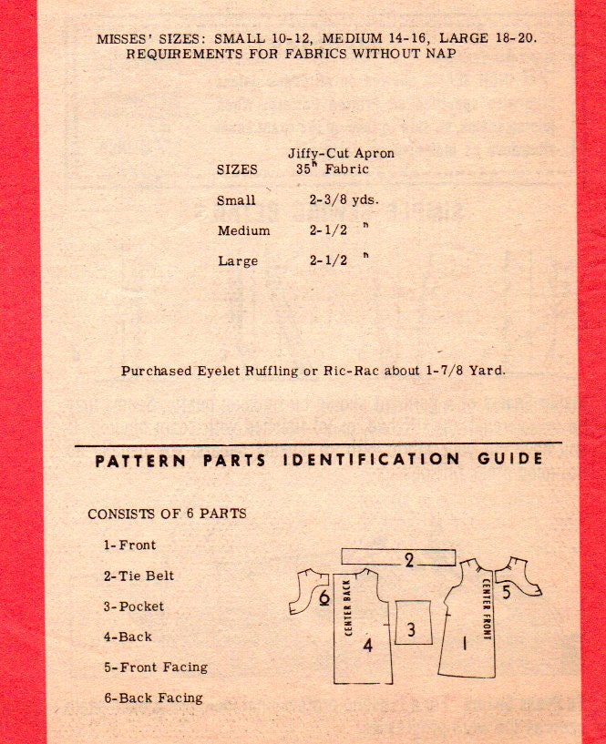 60 S Cobbler Style Apron Pattern Bust 34 36 Etsy Canada